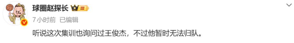 最近一场NCAA常规赛,王俊杰所在的旧金山大学虽然不敌对手,但王俊杰发挥出色,在26分钟的上场时间里,拿到19分4篮板。据媒体人球圈赵探长报道,这次中国男篮集训也询问过王俊杰,但他暂时无法归队。
