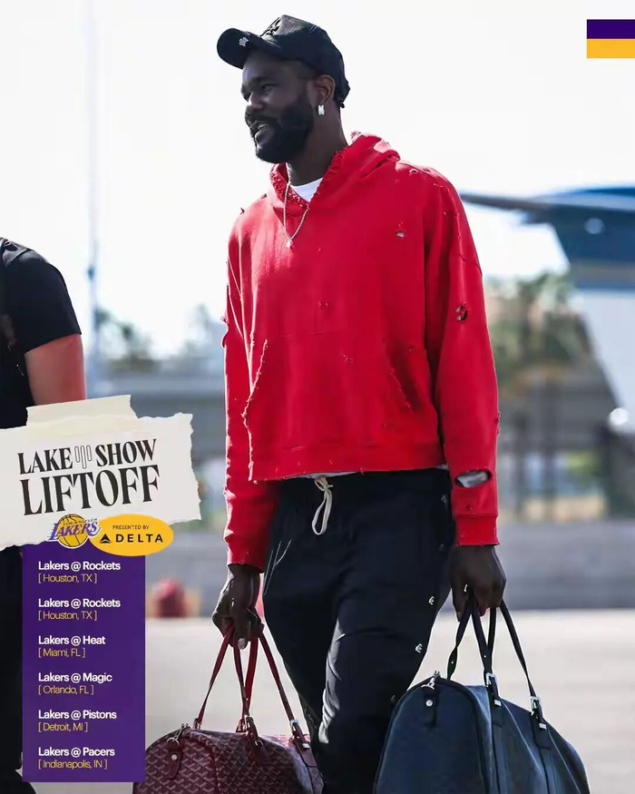 赛前,湖人社媒分享湖人众将奔赴休斯顿的登机照片组图,卢卡-东契奇等球员出镜。
